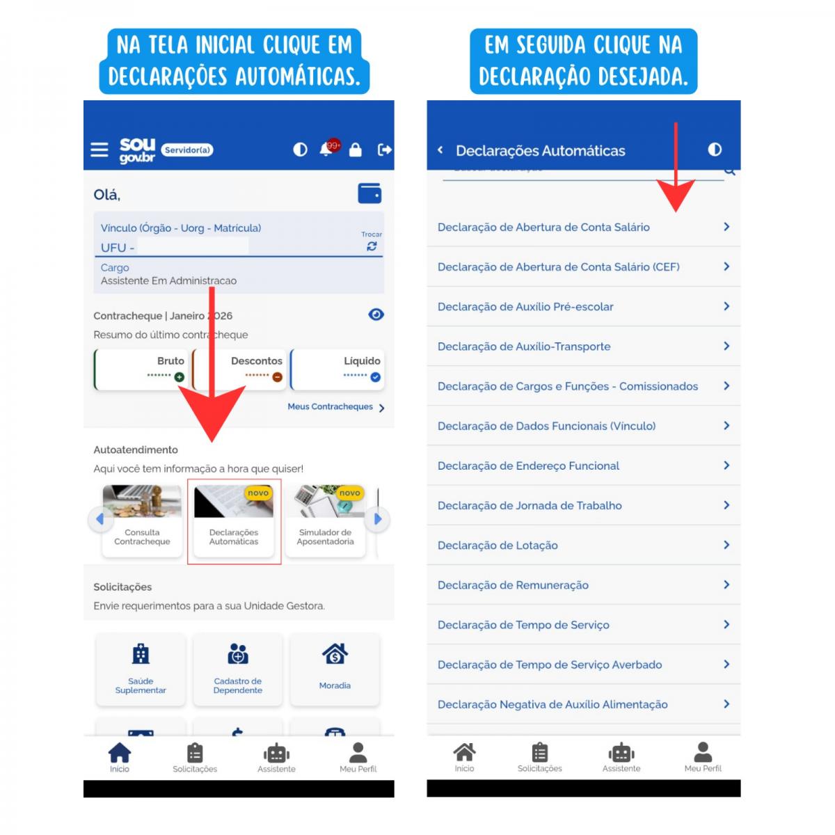 A declaração funcional é gerada automaticamente a partir da solicitação do servidor no SouGov, conforme abaixo apresentado: